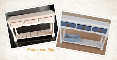 | Tineke Hoogerwerf maakte dit kastje - met op het kasje het cadeautje van de februari opdracht - |